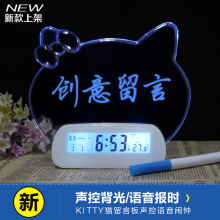 可爱KT猫留言板闹钟 创意学生静音时钟夜光 懒人床头语音电子钟表