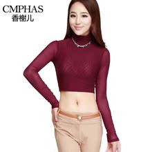 香榭儿春秋半截网纱修身长袖t恤 女 高领网纱打底衫黑色纱衣006-2