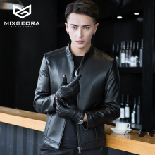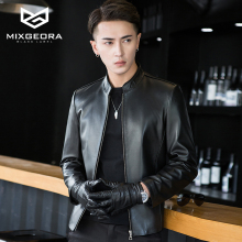 2017 新款绵羊皮真皮夹克男士短款真皮皮衣海宁立领薄款真皮外套