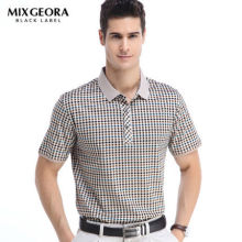 2017夏装新款男装双丝光棉短袖t恤 格子纯棉T恤 中年男士短袖t恤