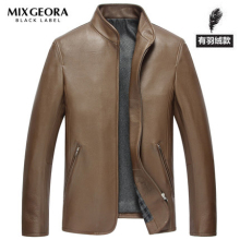 秋冬加绒加厚男士真皮羽绒服水貂立领真皮皮衣男真皮夹克海宁皮衣