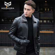 清仓原生态皮毛一体男皮夹克男士真皮皮衣翻领短款皮衣皮草空军服