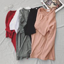 美物家 夏季新款韩版五分袖纯棉纯色圆领宽松T恤女百搭学生打底衫