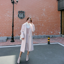 美物家 16冬装新款自带女神气场の中长款过膝呢子大衣毛呢外套女