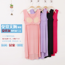 新款春夏带胸垫莫代尔睡裙女大码吊带罩杯一体性感宽松睡衣家居服