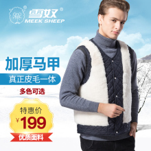 雪奴秋冬皮毛一体马甲羊毛背心男中老年爸爸装羊皮加厚的保暖坎肩