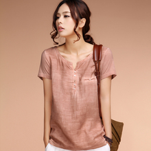 韩潮袭人2017夏装新品拼接复古上衣做旧宽松文艺棉麻短袖t恤女潮