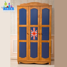 全实木儿童家具地中海三门衣柜2组装卧室衣橱3组合整体衣服柜子