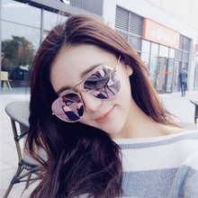 2016复古时尚大框圆脸超轻彩膜太阳眼镜粉色明星反光眼镜墨镜女潮