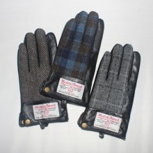 Harris Tweed进口毛呢女式冬季加绒保暖羊皮手套 男款真皮手套