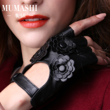 韩版真皮手套女士羊皮半指手套短款露指机车款皮手套骑行学生手套