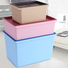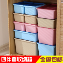 加厚炫彩带盖塑料收纳箱整理箱零食杂物化妆品内衣物收纳盒储物箱