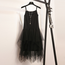 不规则吊带纱裙打底裙夏女衬裙中长款无袖背心裙蓬蓬裙网纱连衣裙