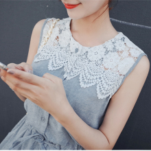 2017夏女装透视中长款蕾丝衫罩衫无袖宽松气质甜美娃娃衫