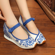 老北京布鞋女春季新款民族风透气鞋运动休闲鞋款内增高扣带绣花