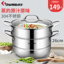创生蒸锅304不锈钢双层加厚复底26cm明火电磁炉通用锅具蒸笼