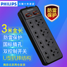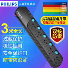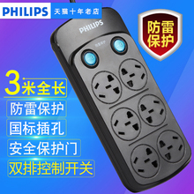 飞利浦插排 防雷插座插线板独立开关排插板带线3m接线板 拖线家用