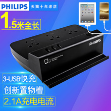 飞利浦插排 大嘴苹果智能充电USB插座 多功能1.5米3插线板 接线板