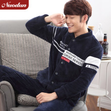 诺盾冬季男士加厚法兰绒家居服套装加绒圆领套头长袖珊瑚绒睡衣男