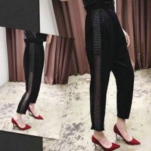 欧洲站2017夏装新款欧货潮侧镂空宽松阔腿裤女九分裤直筒休闲裤SZ