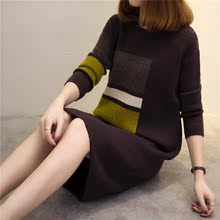 韩版中长款套头女毛衣宽松秋冬装打底衫针织连衣裙女装2016新款潮