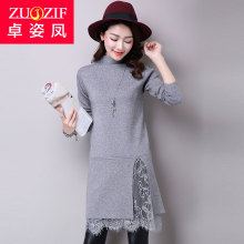 秋冬新款女装韩版长袖针织衫套头打底潮中长款半高领毛衣蕾丝外套