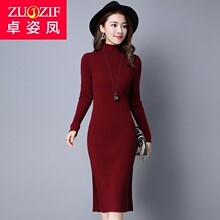 2017秋冬新款加长款开叉紧身包臀毛衣裙中长款针织衫女套头连衣裙