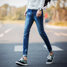 黑色牛仔裤男士修身秋冬款男生青少年弹力小脚裤韩版潮休闲长裤子