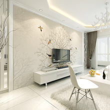 复古怀旧墙纸环保墙布现代中式电视背景墙壁纸无纺布壁画树上小鸟