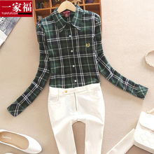 2017年春秋长袖格子衬衫女韩范时尚简约韩版修身纯棉磨毛打底衬衣