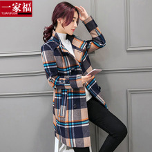 2016秋冬新款羊毛大衣女中长款立领韩版加厚格子呢子修身毛呢外套