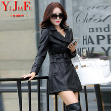 2016年秋装新款皮衣女中长款韩版修身水洗皮机车夹克风衣外套两穿