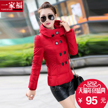2016秋冬新款连帽棉衣女短款韩版修身时尚轻薄棉服双排扣棉袄外套