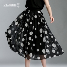 真丝半身裙女夏2017欧版新款桑蚕丝百褶大摆百搭波点中长裙子