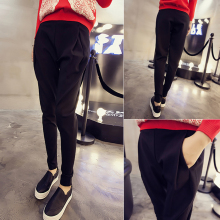 欧洲站春夏女装黄色字母条休闲运动裤新款大裆裤小脚裤韩范哈伦裤