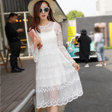 连衣裙女夏2017新款韩版气质中长款修身网纱裙时尚蕾丝两件套裙子