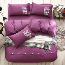 全棉四件套简约三件套纯色纯棉床单被套床上用品1.8/2.0m双人床笠