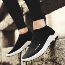 夏季新款飞织男鞋韩版潮流黑色休闲鞋男生板鞋防臭网面黑色透气鞋
