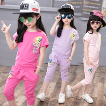 韩潮童装夏款女童套装夏季短袖中小大儿童运动装两件套纯棉卡通