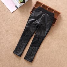 新款冬款韩版女童加绒打底裤小脚裤仿皮裤儿童加厚PU紧身裤靴裤