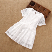 独家版夏季新品女童短袖白色雪纺衬衫 蕾丝韩版淑女小清新薄上衣