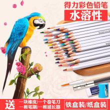 得力48色水溶性彩铅铁盒72色 学生用彩色铅笔手绘填色涂色绘画笔