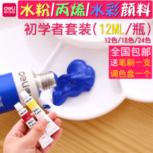 得力水粉颜料绘画颜料儿童美术水彩12/18/24色丙烯广告画颜料套装