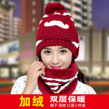 帽子女冬天韩版针织毛线帽秋冬季口罩帽胡子围脖帽加绒骑车护耳帽