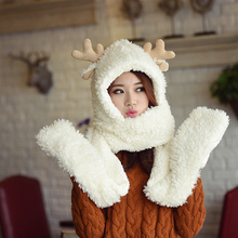 2016韩国亲子可爱围巾冬季女围脖加厚女帽子围巾手套三件一体麋鹿