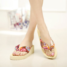 2016夏季高波西米亚人字拖 厚底坡跟凉拖松糕夹脚凉鞋沙滩拖鞋女