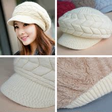 护耳女士韩版秋冬天针织鸭舌帽子 毛线帽 兔毛帽潮冬季 双层保暖