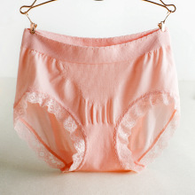 2017春夏 中腰纯棉内裤女 全棉裆部蕾丝边性感大码舒适无痕三角裤
