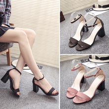 罗马粗跟鱼嘴凉鞋女夏季2017新款韩版百搭高跟女鞋子一字带女士鞋