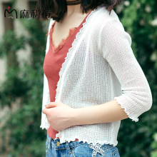 Maliboo/麻利布2017夏季新款纯色木耳边衬衫薄款短袖针织衫女披肩
